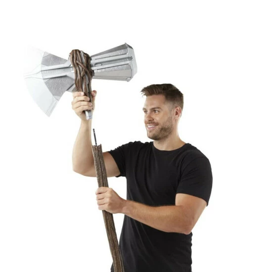 Mighty Thor, son of Odin, uses his super-powers to protect both planet Earth and his home world of Asgard. Thor really has an axe to grind after his evil sister destroys his hammer Mjölnir. Fans and collectors can imagine powering up for action alongside their favorites Iron Man, Captain America, Spider-Man, Black Widow, Hulk, Black Panther, and more with Avengers figures and roleplay gear! (Additional products each sold separately. Subject to availability.). Imagine defeating Thanos with this Thor electronic roleplay axe! Activate exciting thunder sound FX with the push of a button. Marvel’s Avengers: Endgame Marvel’s Stormbreaker Electronic Axe, fans and collectors can imagine joining the battle to save the universe.Marvel Stormbreaker Electronic Axe:- When fans and collectors wield Marvel’s Stormbreaker Electronic Axe, they can imagine the adventures of the Asgardian Thor, son of Odin.Sound FX To Bring Your Battles To Life:- Fans and collectors alike can imagine charging into battle with the power of thunder rumbling in the palms of their hands with the Stormbreaker Axe with sound FX.Premium Articulation And Detailing:- Stormbreaker was forged to help the Avengers defeat the Mad Titan Thanos, and fans and collectors can create exciting moments with this electronic roleplay gear inspired by the Avengers: Endgame movie.Based On The Marvel Movie The Avengers Endgame:- The Marvel Universe of comics, movies, cartoons, and television shows is full of heroes like Thor, and now fans can imagine joining the action.